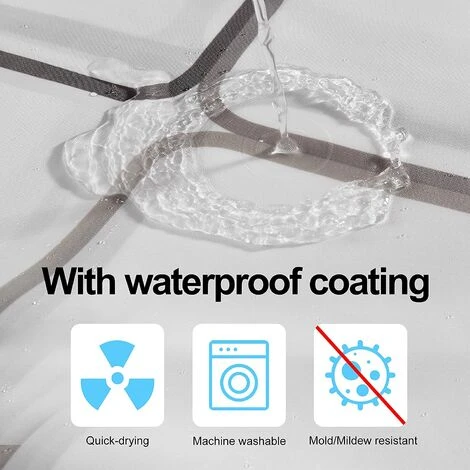 [Il tessuto in poliestere è liscio e morbido, resistente alle pieghe, traspirante e previene la muffa. Allo stesso tempo, è molto resistente, non reagisce pericolosamente con i detergenti, non si sbiadisce e non si deforma. [Impermeabilizzazione e antimuffa]La tenda della doccia è impermeabile e si asciuga rapidamente, l’acqua fuoriesce tessuto facilmente e previene la muffa. Fornisci alla tua famiglia l’ambiente di balneazione più sicuro e confortevole.Dimensioni ideali] La tenda da bagno misura 180 x 200 cm e può essere completamente coperta per adattarsi a docce e vasche da bagno standard. Previene gli schizzi e aiuta a mantenere il bagno asciutto e umido.