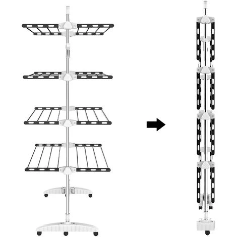 Possibilità di appendere tanti vestiti e asciugarli rapidamente grazie ai ripiani rotanti e ai due bracci per gli appendini