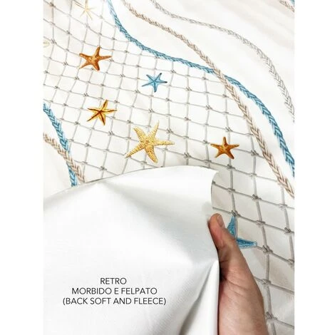 Tovaglia ‘ LIMA © ‘ in tela cerata morbida e ultra resistente stampata in un bel disegno moderno con stelle marine, un angolo di mare… a casa tua !