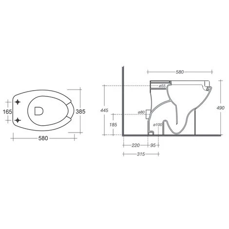 - Tipologia: vaso aperto per disabil con scarico a