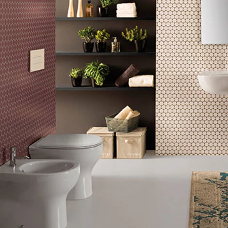 Di questa collezione fa parte il kit wc+sedile frizionato che ti proponiamo: in ceramica bianca lucida, con dimensioni 52×36 cm e predisposizione per l’installazione filo muro.