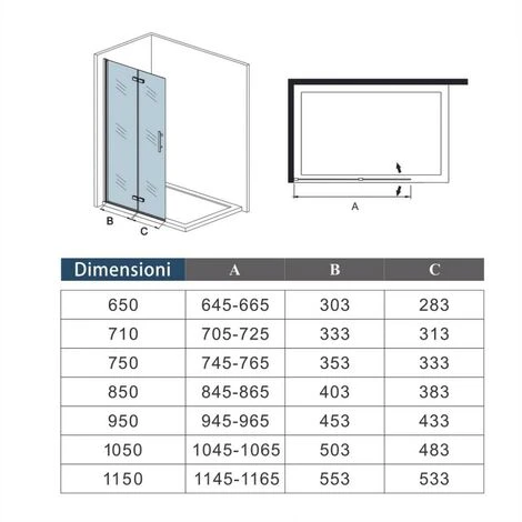 - 1.Porta per nicchia come Walk in dimensione disponibile: larga 65 cm alta 190 cm.