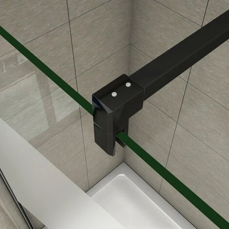 - 6. Barra stabilizzatrice in alluminio, da 90 cm, con un’elegante finitura nero opaco regolabile tramite taglio con apposito strumento alla misura che si desidera, installabile perpendicolarmente alla parete doccia;