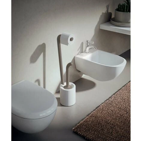 Colonnina portarotolo e porta scopino in resine termoplastiche. Design:Babled e Co.